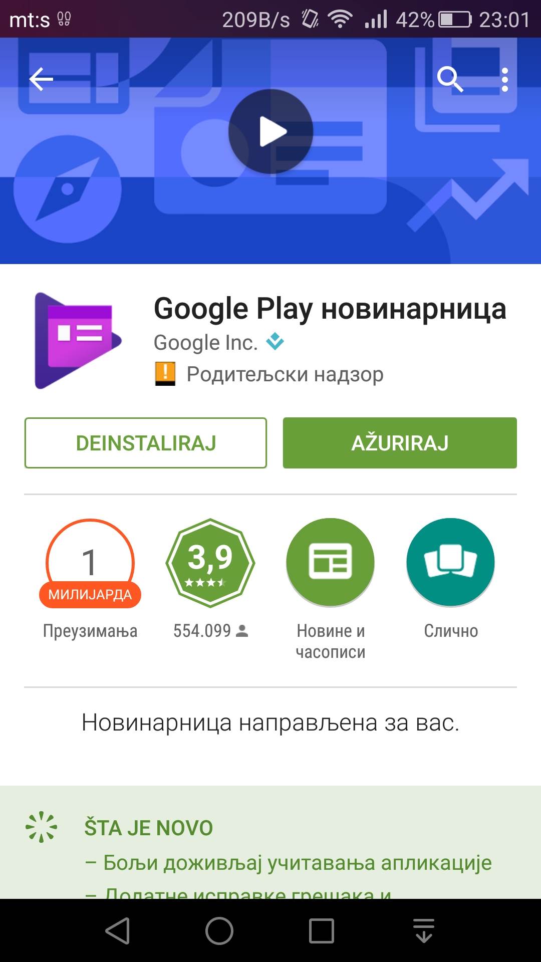 Google Play Novinarnica je prva među svim Google Play aplikacijama koja je dobila "fejsliftinig" i pored toga što joj je promenjena ikonica, koja će sad biti deo nove "porodice" Google Play ikonica u Material Design-u, neznatno joj je promenjen i interfejs.