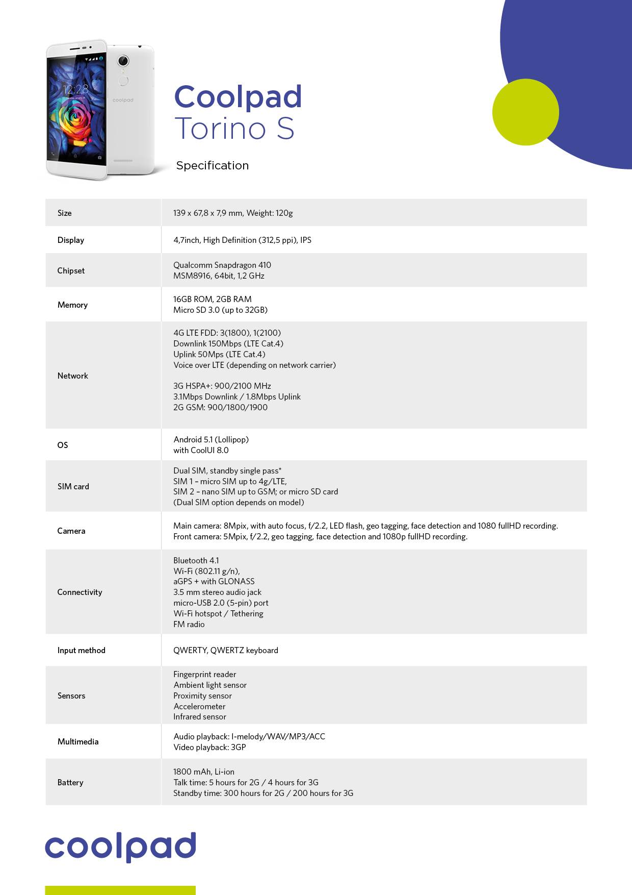 Coolpad, kineski proizvođač, dokazao je da karakteristike poput LTE tehnologije, IR porta, "5u1" čitača otiska prsta, mogu biti dostupne svima. Od 4. maja u Srbiji je dostupan Coolpad Torino S, u beloj i šampanjac boji, a preporučena maloprodajna cena oko 205 evra.