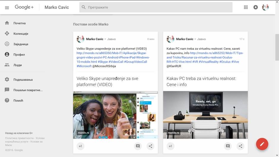 Verovatno zabrinut gašenjem Vine društvene mreže, Google je rešio da poradi malo na svojoj Google Plus društvenoj mreži, koju su gotovo svi zaboravili. Ažuriranje koje je upravo stiglo za Google Plus iznenadilo je sve, jer smo svi mislili da će Google polako napustiti tu mrežu, što je u nekoliko navrata spomenuo i sam Google.