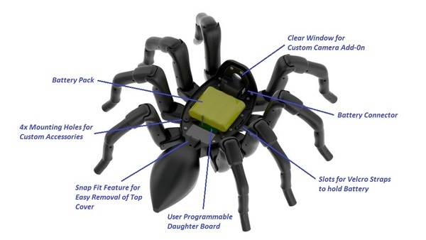 Jedan od njih je i paukolikiT8X robot, od kojeg se svakom arahnofobu ledi krv u žilama. Njegovih osam nogu i telo pokreću 26 naprednih servo motora koji mu omogućavaju potpuno prirodno, autentično i kompleksno kretanje i ponašanje. Upravljanje se vrši preko Wi-Fi signala uz pomoć aplikacije za mobilni telefon. Robot se može podešavati i programirati po želji, i skripte programa ponašanja su jednostavne za deljenje.