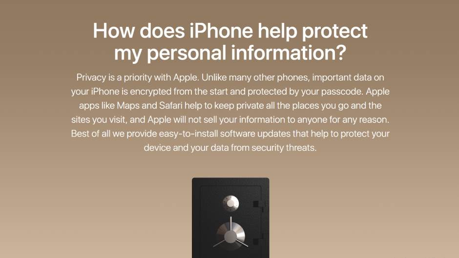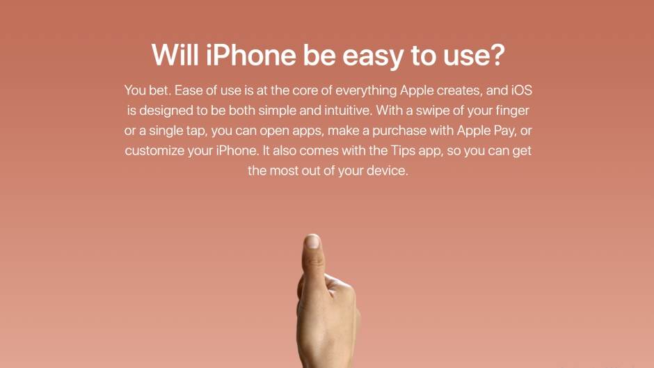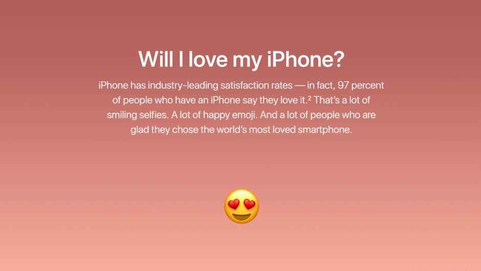 Apple smatra da je iPhone brz, sposoban kad su u pitanju kamera, poruke i zaštita podataka, lako se rukuje jednom rukom, a dodatno se ističu korisnička podrška, pomoć zaposlenih u prodavnici, kao i način na koji Apple svakim iPhone uređajem nastoji da bude u skladu s normama očuvanja životne sredine.