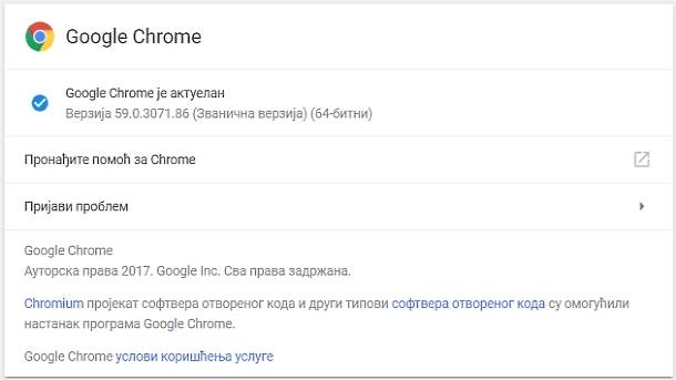 Očekujemo vaše utiske nakon nadogradnje! (Klik na tri tačke, potom na Help, a onda na About Google Chrome).