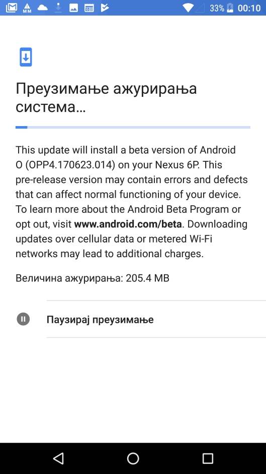 Android O u poslednjem izdanju oznake OPP4.170623.014 (verzija za naš test model Huawei Nexus 6P) dostupna je kao OTA ažuriranje, a ako niste dobili obaveštenje o dostupnosti nove verzije, potražite je ručno u Podešavanja - Sistem - Ažuriranje sistema.