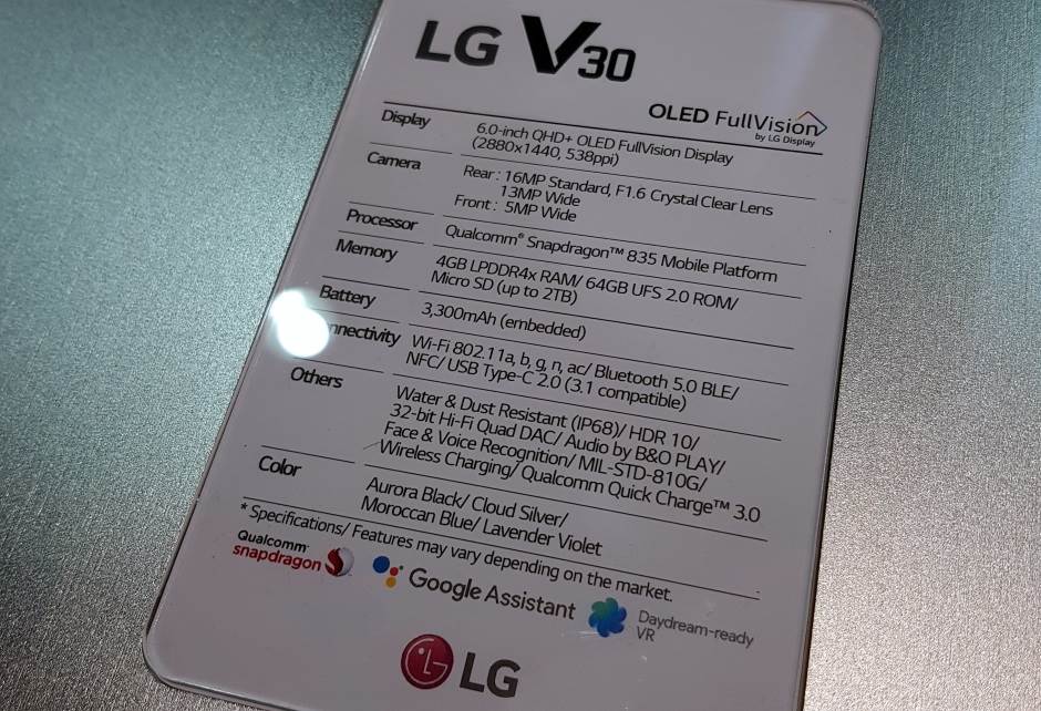 LG V30 specifikacije: