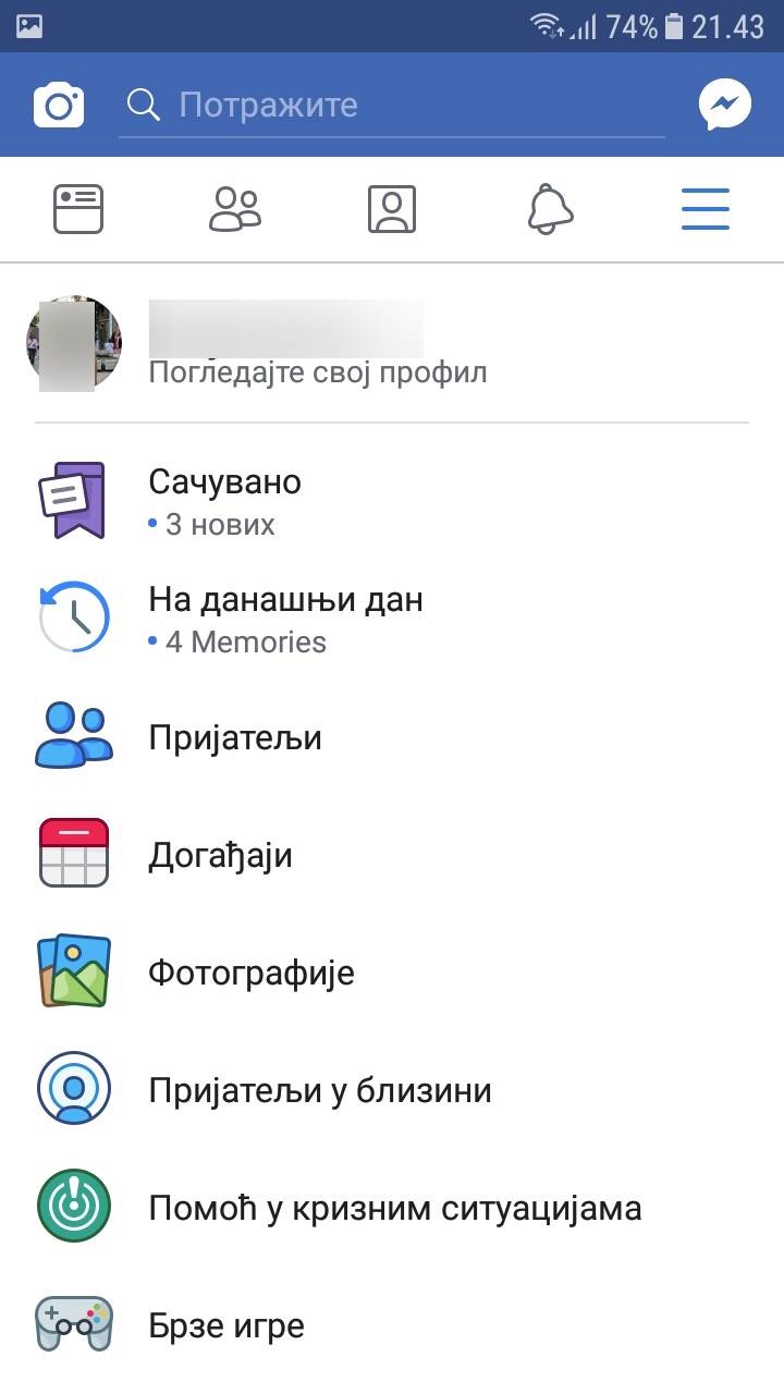 Od novih opcija primetili smo svim korisnicima aktivu opciju Prijatelji u blizini, a novododate su Pomoć u kriznim situacijama, Brze igre, Sport, Zahtevi uređaja, Interakcija sa reklamama, Ponude, Pronađi Wi-Fi i druge.