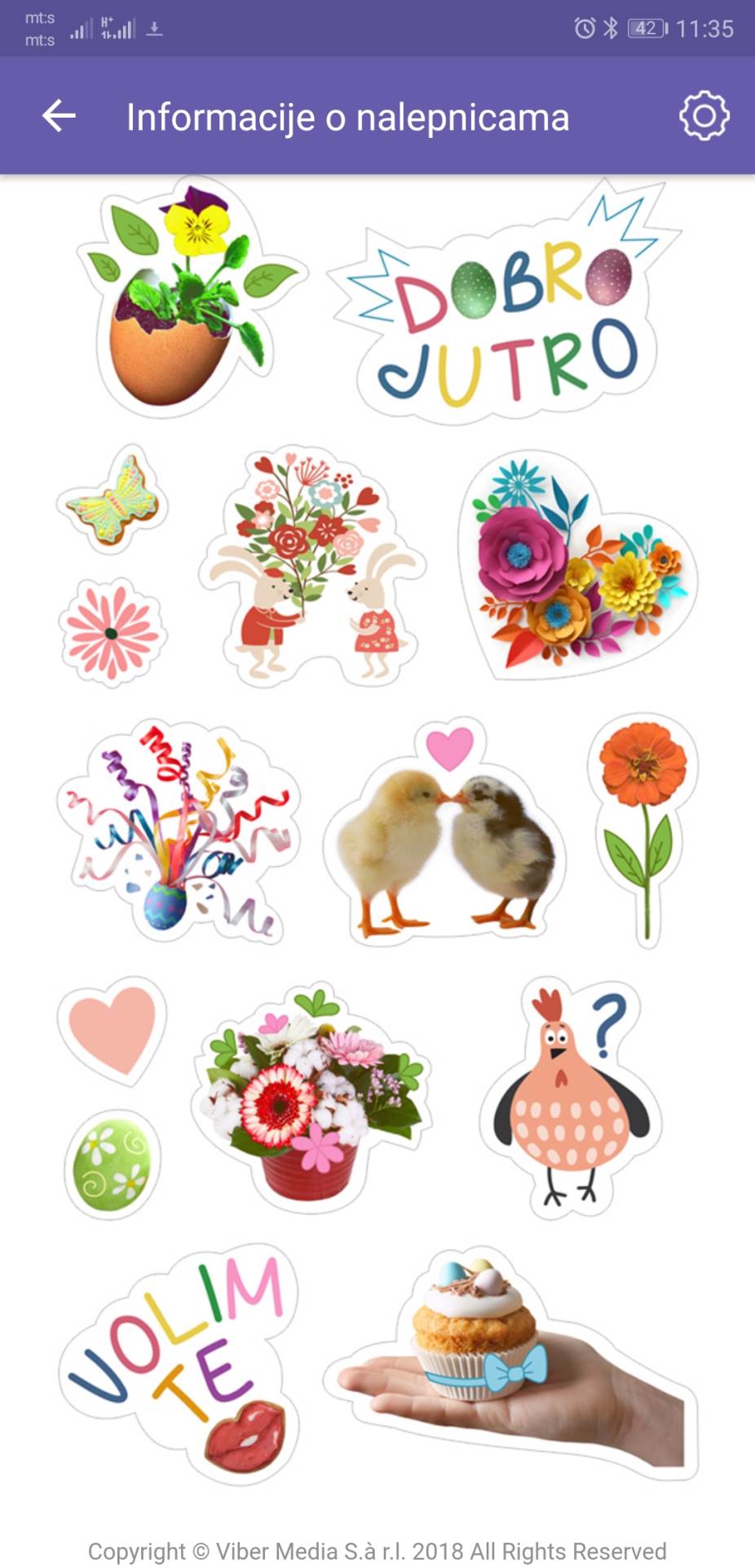 Viber već ima izuzetnu kolekciju besplatnih sličica, koju nam je predstavio 2017. godine u ovo vreme, a sad su nam na raspolaganju nove sličice, koje možete opet besplatno da preuzmete. Sličice su na srpskom jeziku i čekaju vas u okviru promo Viber poruke. Ako vam poruka nije stigla u Sticker Market odeljku ukucajte USKRS 2018 i pronađite slike, pa ih preuzmite besplatno.