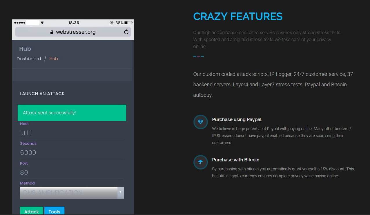 U prethodnim godinama, da bi se pokrenuo DDoS napad, „napadač“ je morao da bude poprilično dobro upućen u internet tehnologiju, što više nije slučaj. Kriminalnim servisom "WEBSTRESSER", bilo koji registrovani korisnik sa malo ili nimalo tehničkog znanja mogao je da plati određenu novčanu naknadu, koristeći sisteme plaćanja putem interneta ili kripto valute, i ostvari ciljani napad na željeni internet portal ili servis.