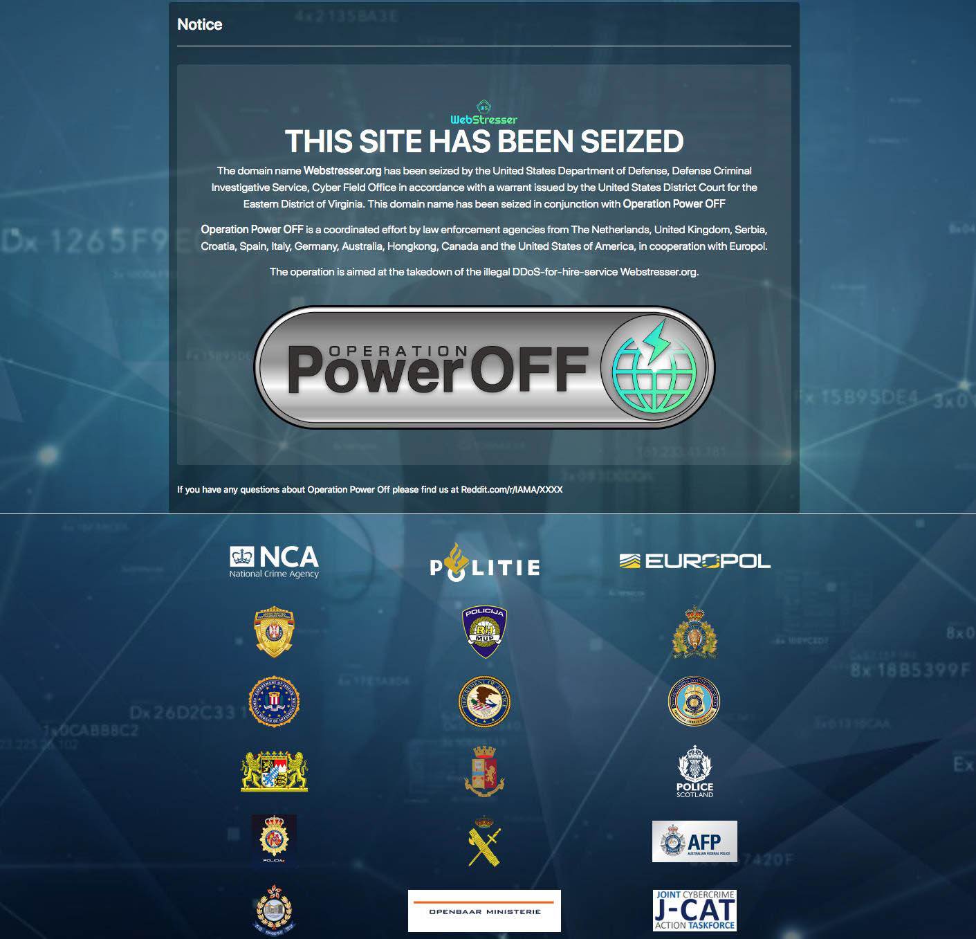 Pomenuti servis je zatim oboren i ugašen i njegova serverska infrastruktura je zaplenjena od strane policija Nemačke, SAD i Holandije. Na sajtu webstresser.org je postavljena tzv. "STOP stranica", na kojoj je i grb MUP-a Republike Srbije i drugih policija koje su učestvovale u akciji.