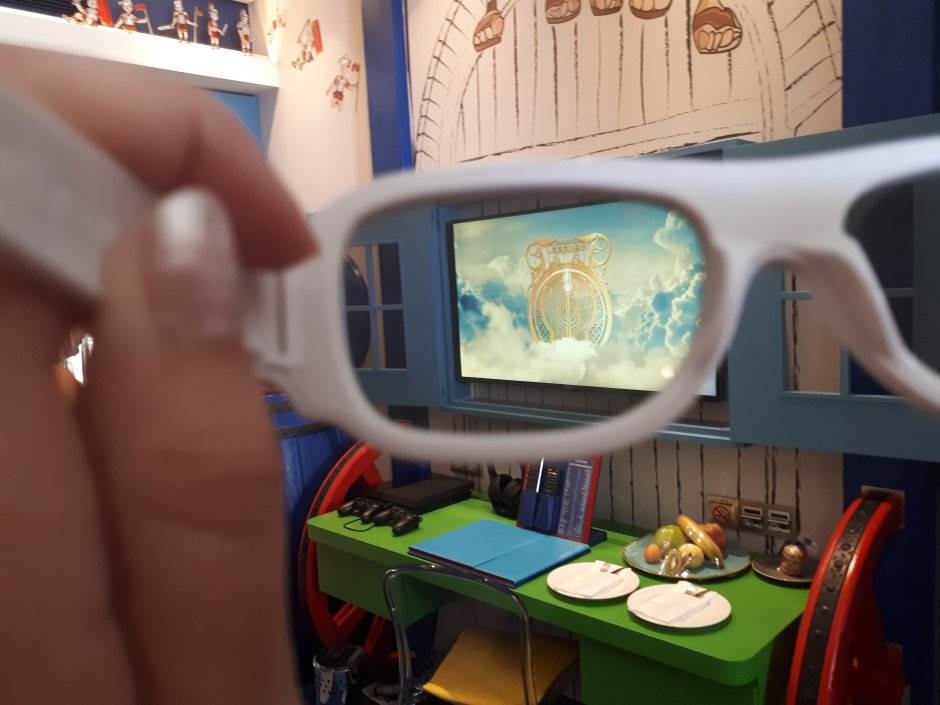 Dok ne stavite naočare, slika na televizoru je mutna kao u bioskopima na 3D projekcijama. 3D naočare se kupuju odvojeno od televizora, što znači da je broj neograničen i na taj način se u domaćinstvu svako može opredeliti šta hoće da gleda u datom momentu, a ako ste vi jedini "car" TV-a, onda imate priliku i da samo menjate naočare umesto što biste vrteli kanale.