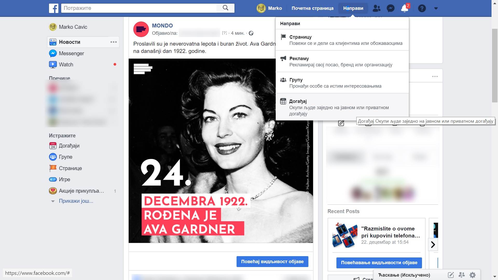 Kreatori sadržaja, stranice i javne ličnosti u Srbiji imaju novo Facebook dugme na raspolaganju - NAPRAVI. Dugme je dodato sredinom decembra na neke od stranica, dok će svi moći da ga koriste u narednih nekoliko nedelja.