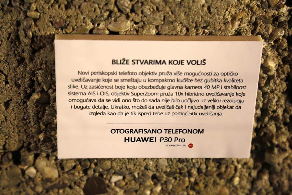 Svako od posetilaca izložbe imao je priliku da kroz specijalna sočiva i opcije za zumiranje, koje Huawei P30 Pro nudi čak i do 50 puta, uveća i približi fotografije manjeg i većeg formata i na taj način se zaista uveri u sposobnosti i moć kamere, koju ovaj telefon i obećava.