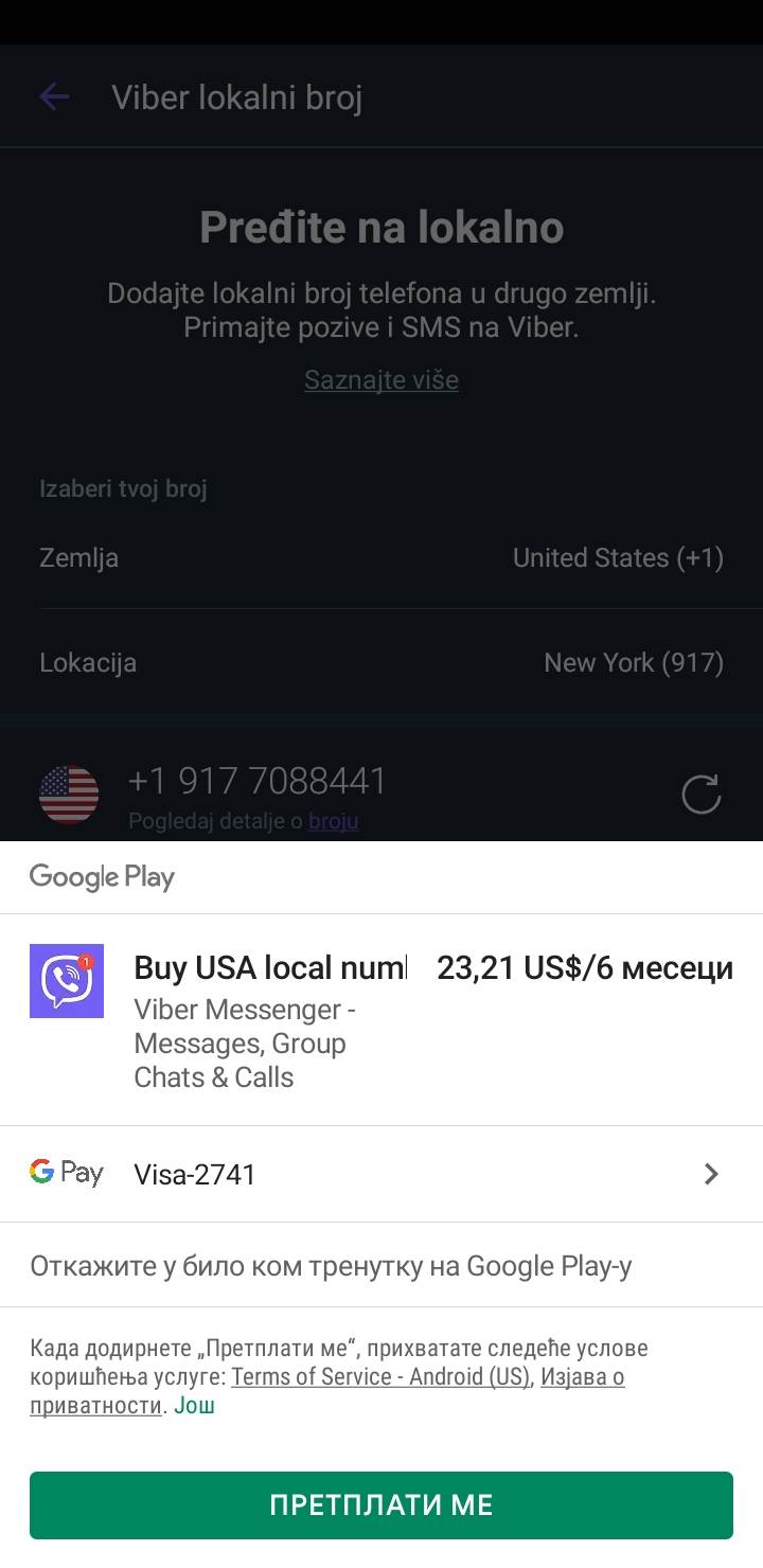 Viber Lokalni Broj dostupna je kroz Još meni, u gornjem delu, odmah ispod vaše profilne slike. U Srbiji je mesečna pretplata trenutno 401,55 RSD za mesec dana usluge za SAD, kao i za Veliku Britaniju i Kanadu. Postoji mogućnost otkazivanja pretplate u svakom trenutku. Redovna cena za sve tri zemlje iz Srbije je 501,34 RSD mesečno nakon isteka promocije.Pretplata se plaća bez napuštanja Viber aplikacije, korišćenjem neke od vaših kartica.