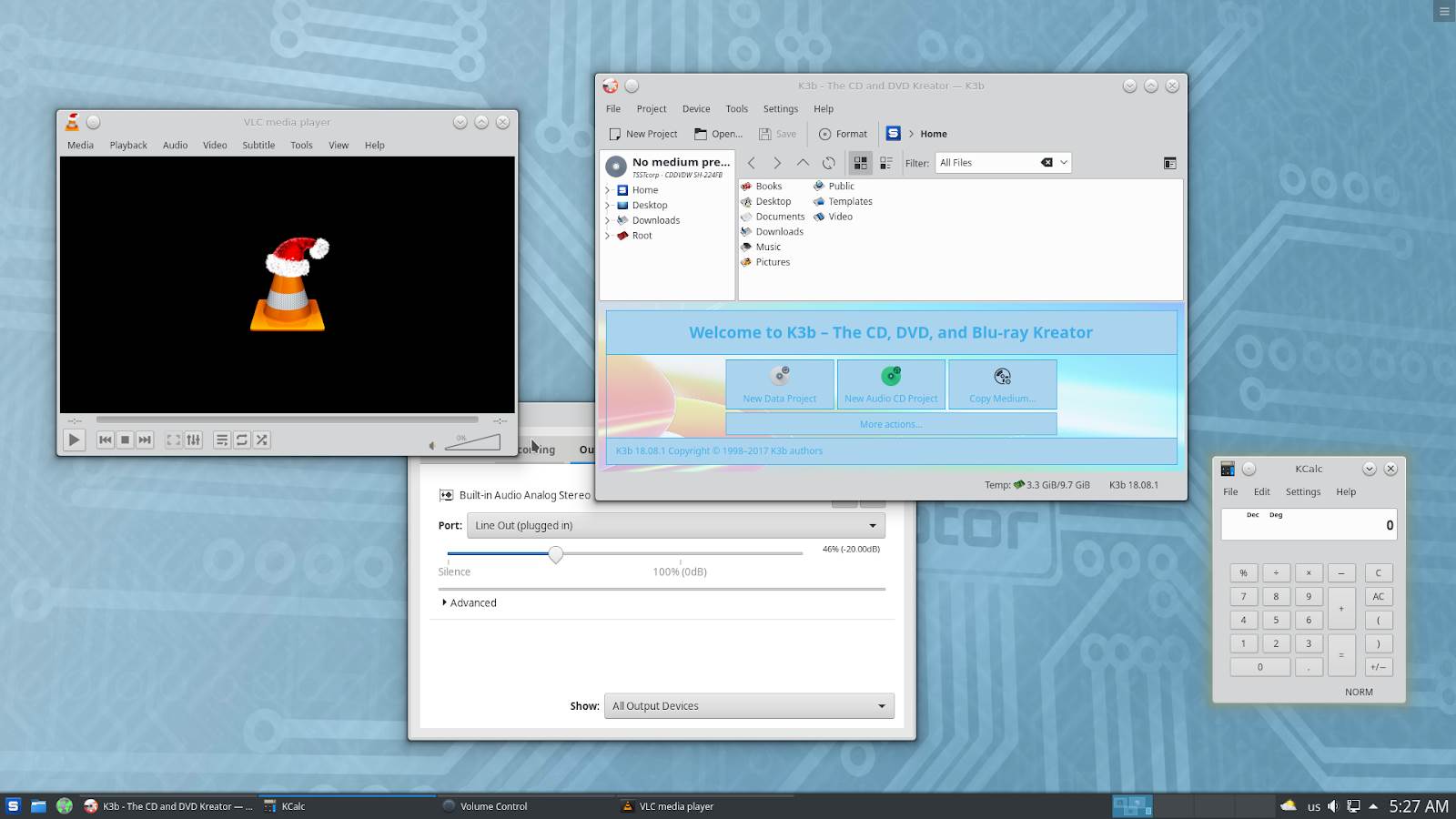 - Grafika / Multimedija: GIMP, Gwenview. VLC, K3b, Guvcview