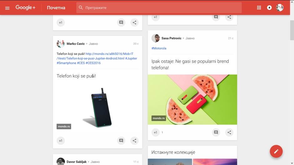 Ovo je trebalo da bude pandan popularnim društvenim mrežama, ali to baš nikad nije bio slučaj. Čak ni izbliza. Godinama je Google+ mreža tavorila kao prirepak, koji smo morali da imamo, uz ostale Google servise, ali je konačno ukinu u oktobru 2018. godine. Naravno, to nije došlo samo od sebe, nego nakon skandaloznog propusta, tokom kojeg je Google+ izložio stotine hiljada korisnika bezbednosnom riziku. Google je čak pokušao da zataška taj propust, ali je nakon istraživanja bezbednosnih stručnjaka morao da ga iznese pred korisnike. Toliko problema tako nepopularne mreže…