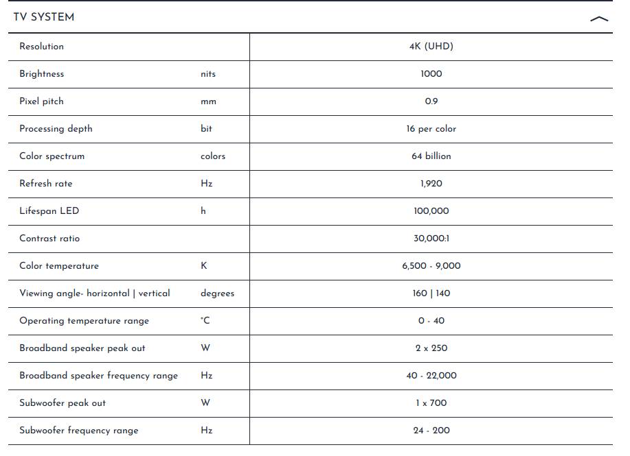 C Seed ističe da njihov M1 televizor ima podršku za HDR10+ (High Dynamic Range), kao i da je integrisan sistem zvučnika 2,1. MicroLED je napravljen od dugotrajnih metala, te će ekran imati životni vek od 100.000 sati (oko 11 godina). Potpune specifikacije možete da pogledate u galeriji, kao i više fotografija.