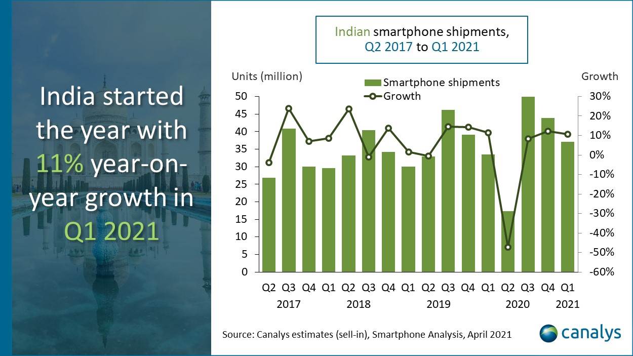 Kompanija Canalys koja se bavi tržištem pametnih telefona je otkrila podatke prvog kvartala 2021. godine.