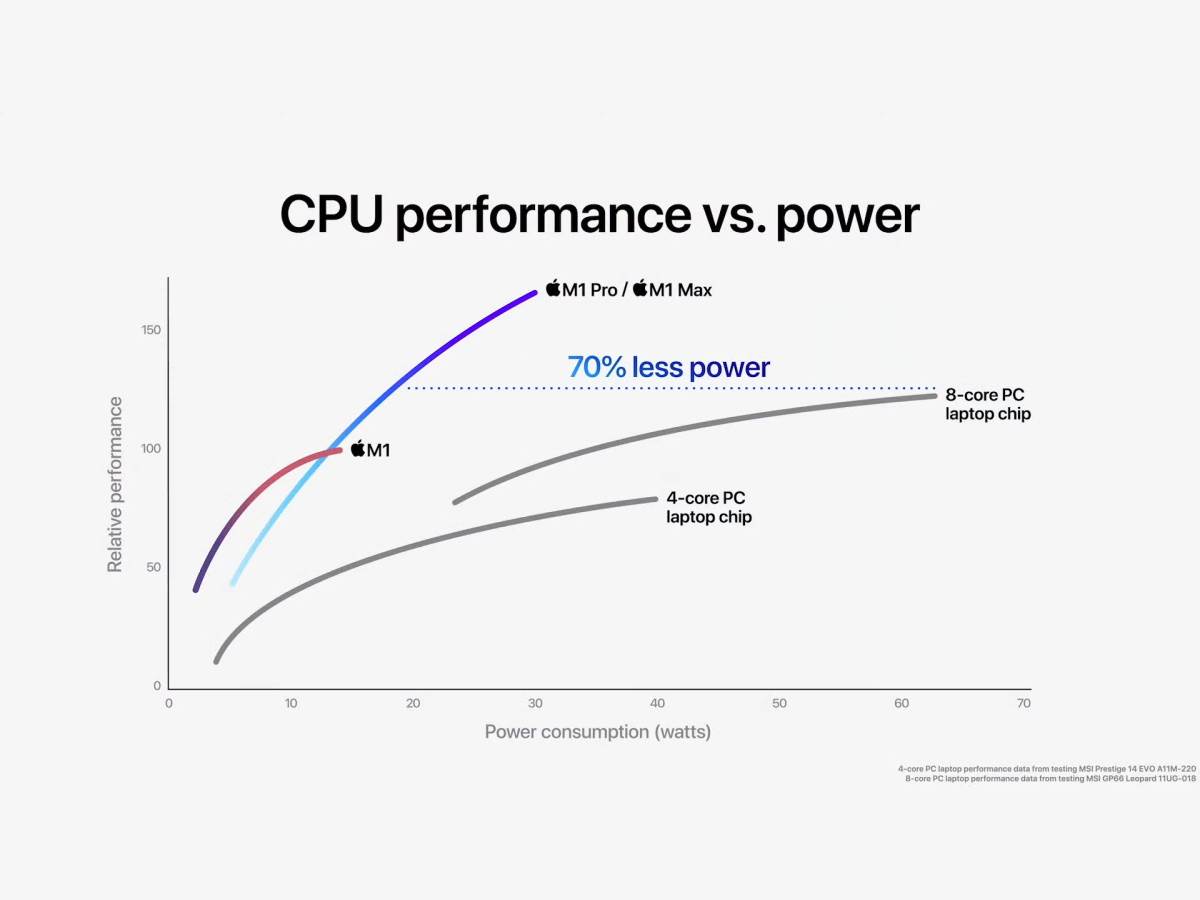 Veliki deo konferencije bio je posvećen novoj generaciji čipova koji su napravljeni za korisnike koji žele moćne performanse. M1 prosto nije bio dovoljno jak za sve potrebe, posebno za zahtevne poslove, gde na svenu stupaju dva sveža modela. Sa naglaskom na performanse i energetsku efikasnost, M1 Pro i Max čipovi, bar po onome što je Apple pokazao imaju znatnu prednost u odnosu na svoje konkurente.