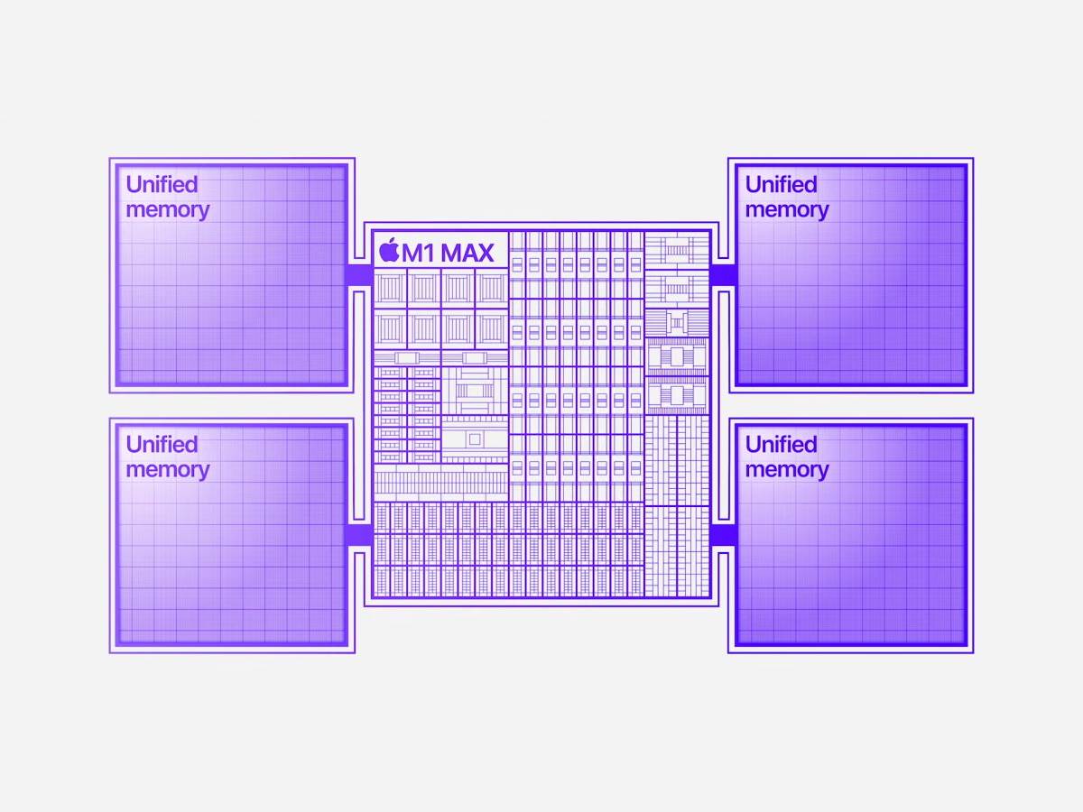 Unified memory je samo deljena memorija koju koristi ovo System on Chip (SOC) rešenje, a M1 Pro može da koristi 32, dok moćniji M1 Max ima mogućnost 64 GB sistemske memorije koju koriste sve SOC komponente zajedno.