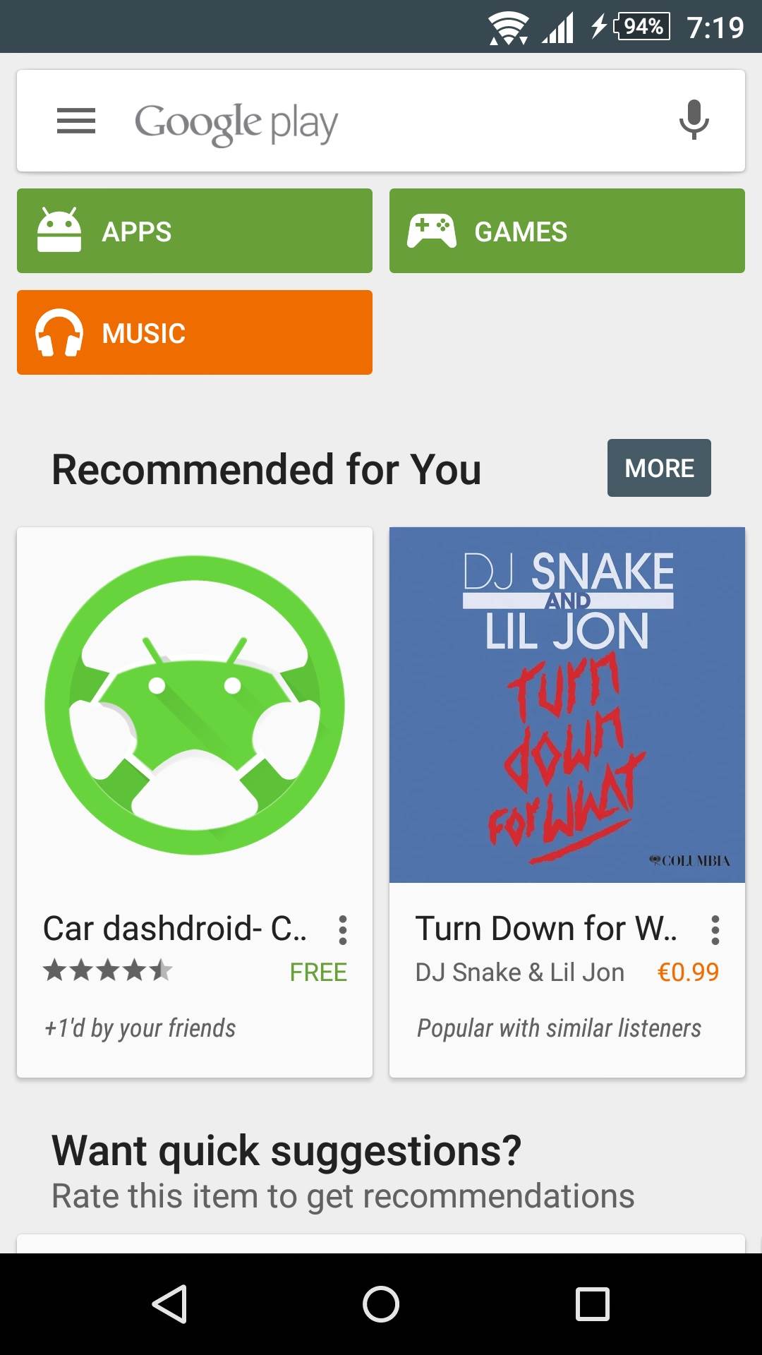 Android korisnici će sada u Google Play prodavnici moći da vide i Music kategoriju pored aplikacija i video igara. Sva muzika koju budete kupili biće vam dostupna putem Play music plejera.
