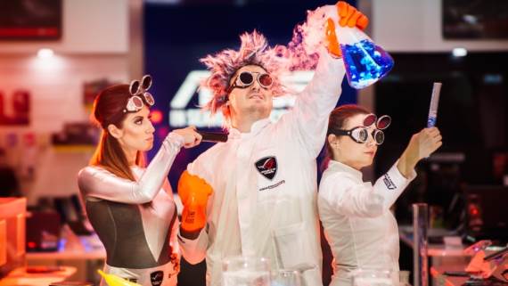 U saradnji s mladim naučnicima tim iz ASUS-a demonstrira sve pogodnosti vodenog hlađenja u odnosu na klasične sisteme, pa tu ima dosta eksperimenata, paljenja vatre, malih eksplozija i svega onoga što nama koji nismo baš pratili na časovima hemije nije potpuno poznato, ali deluje interesantno.
