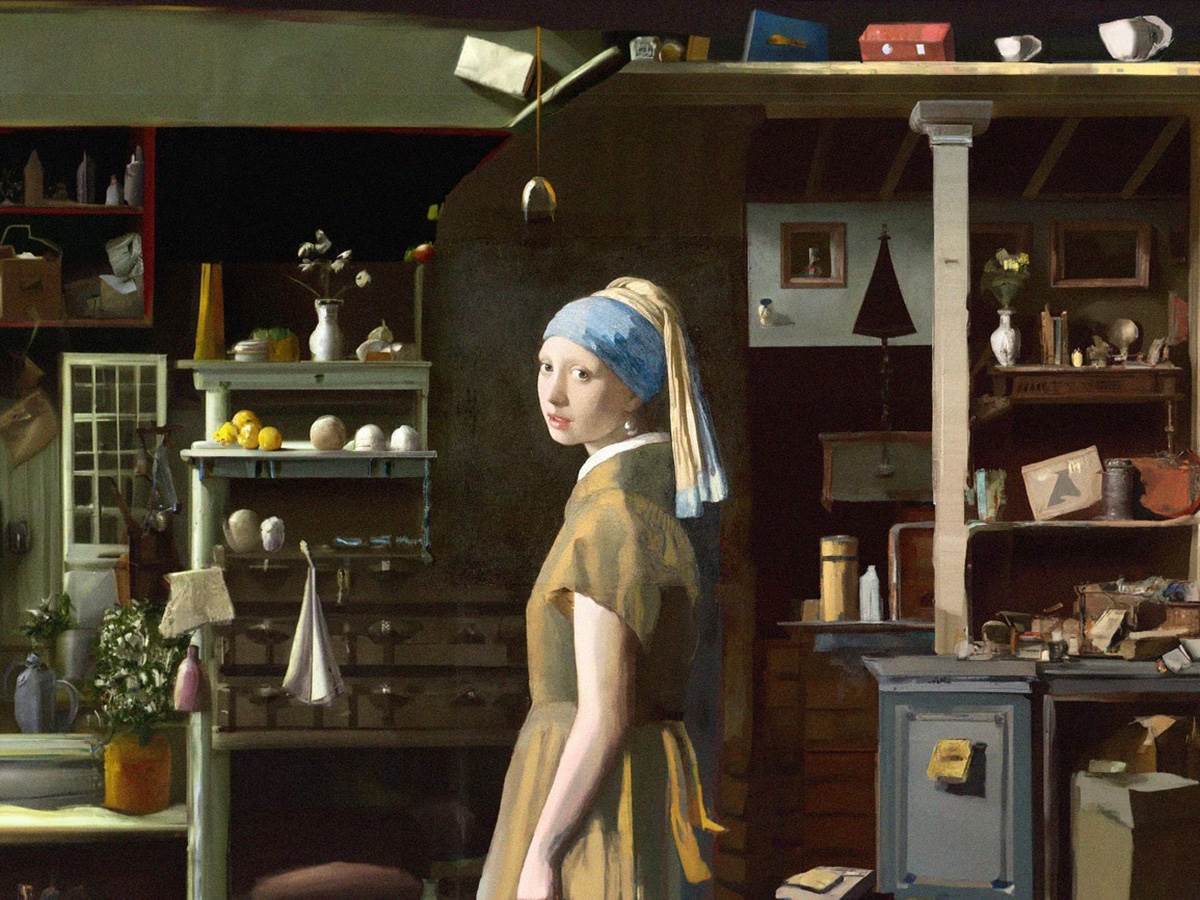 U primeru iznad, DALL-E 2 je uz pomoć ljudskih podsticaja "zamislio" šta je izvan okvira portreta Johanesa Vermera "Devojka sa bisernom minđušom". Čak i na osnovu ograničenih informacija koje pruža portret, sistem je bio u stanju da to učini u Vermerovom stilu, oponašajući senke i naglaske originala.