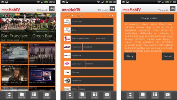 Aplikacija omogućava jednostavan izbor TV kanala i praćenje programa kao da korisnik gleda televiziju kod kuće. Odmah nakon logovanja u aplikaciju korisnik može da odabere jedan od preko 30 kanala. U ponudi su ArenaSport paket sa sva četiri programa, svi kanali sa nacionalnom frekfencijom, paket Pinkovih kanala, muzički kanali sa MTV Adria kanalom, strani info kanali (Russia Today, EuroNews, BBC World), nekoliko domaćih i satelitskih kanala lokalnog karaktera i jedan kanal za odrasle.