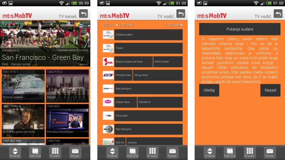 Kvalitet slike je vrlo dobar, pa bez problema na HTC-u One X ili Galaxyju S3 možete da pogledate fudbalski ili teniski meč. Ukoliko telefon ima Direct DLNA ili Direct Wi-Fi funkciju možete sliku sa telefona ili tableta prebaciti i na kompatibilan TV, što će podići ugođaj gledanja programa.