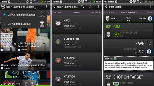 Kao zvanični pametni telefon UEFA Lige šampiona i UEFA Lige Evrope, HTC je kreirao aplikaciju koja obaveštava o najnovijim statističkim podacima, podesivog je formata i modernog dizajna.