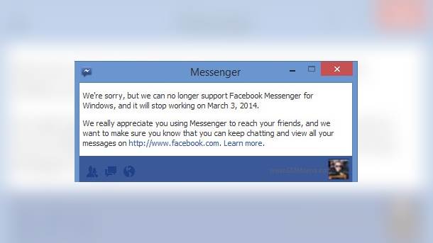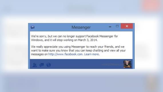 Na Facebook stranicama odavno se ne može naći instalacioni fajl Messengera za Windows, a sada na "Help" stranici stoji samo par saveta kako da izbrišete taj servis sa svog računara, čiji se razvoj napušta. Ovo ne dolazi kao iznenađenje, jer je Facebook već neko vreme nezainteresovan za svoj desktop klijent, a i nedavno je kupio WhatsApp, pa se očekuje neka značajnija integracija tog servisa u Facebook "ponudu" uskoro. Alternativa su mobilne Facebook aplikacije i pristup Messengeru preko sajta Fejsa.