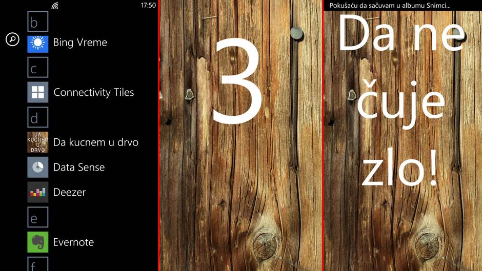 Pa, nabavite Da kucnem u drvo za Android i Windows Phone! Prvo se dobro pohvalite nekome i onda, ako u blizini nema drveta - brzo izvadite svoj telefon i pokucajte u njegov displej tri puta - da ne čuje zlo, za svaki slučaj! Da kucnem u drvo je relativno nova aplikacija, predstavljena u februaru 2014. godine, sa odličnom ocenom, nastala u želji da se ne zaboravi stari običaj kucanja u drvo i da se "rezbije maler".