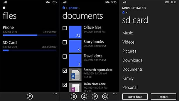 Files, kako se zove Microsoft WP 8.1 Fajl menadžer, omogućava da: