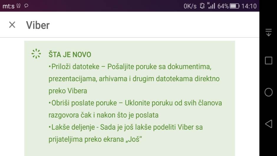 - Lakše deljenje: Podelite Viber poruke preko komande "još" sa drugim aplikacijama (Facebook i Twitter)