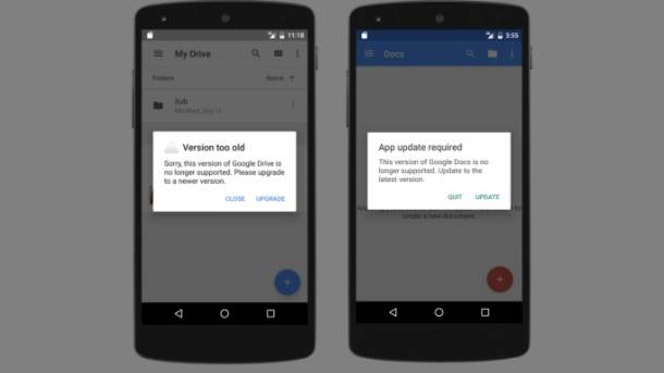 Korisnici koji nisu ažurirali svoje aplikacije zbog manjka prostora na telefonu moraće ili da brišu neke druge aplikacije da bi ažurirali ove ili da pređu na neki drugi model telefona. Google Drive, Docs, Sheet i Slides aplikacije nisu obavezne i mogu se izbrisati sa telefona i koristiti onlajn ili na računaru. Takođe, korisnici bi trebalo da pokušaju sa prebacivanjem ovih aplikacija na microSD karticu, ukoliko im Android sistem koji koriste to dozvoljava.