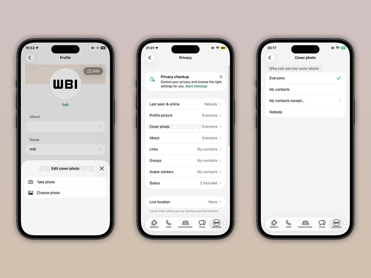 Korisnici će moći da biraju ko vidi njihovu naslovnu sliku, uz poznate opcije kao što su "Svi", "Moji kontakti", "Moji kontakti osim" i "Niko". Ova podešavanja već postoje za profilnu fotografiju i status, pa će iskustvo ostati dosledno.