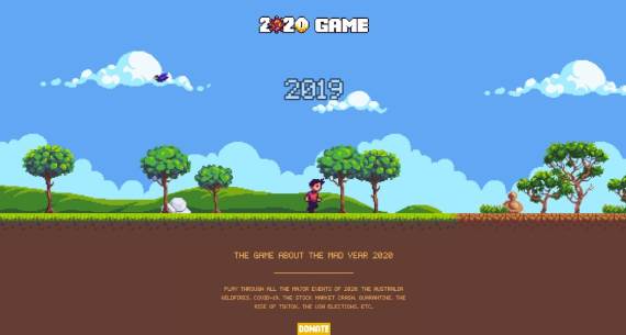 Ova 2D platforma koja podseća na legendarnog Super Marija će uzeti nešto manje od 10 minuta vašeg vremena, jer veoma kratko traje, za razliku od 2020. koja je delovala na trenutke kao večnost! 2020 Game je delo Maksa Garkavija koji je sam radio na ovoj igri šest meseci, što čini ovo ostvarenje impresivnijim, a svaki nivo predstavlja jednu fazu u prošloj godini.