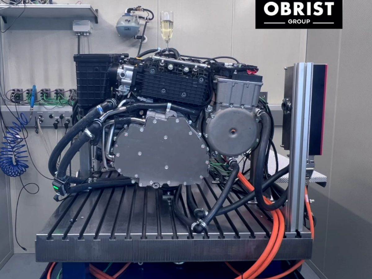 Ovaj kompaktni dvotaktni agregat, međutim, nije namenjen da za pogon vozila, već isključivo za proizvodnju električne energije. Motor napaja pomoćnu bateriju težine 98 kilograma, sastavljenu od cilindričnih ćelija koje su složene i izolovane tako da položaj u koji su postavljene odgovara najpovoljnijoj radnoj temperaturi.