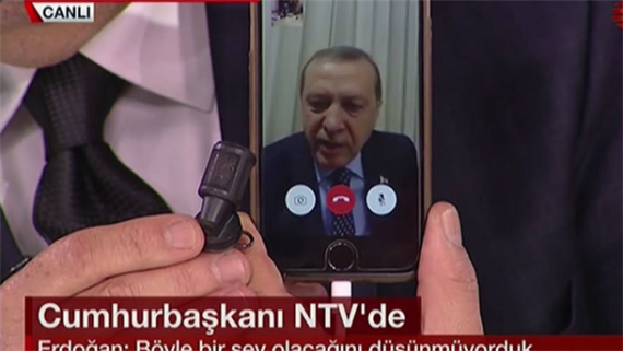 U trenucima totalnog haosa, kada je CNN Turk bio pod okupacijom pobunjenog dela vojske, Erdogan je uključio FaceTime App aplikaciju putem koje je pozvao narod da izađe na ulice, i usprotivi se vojnom udaru.