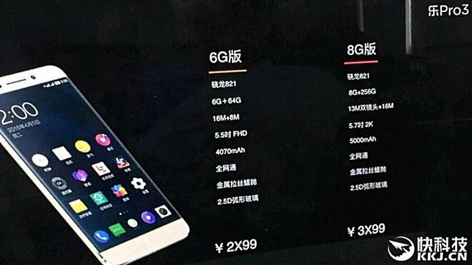 LeEcoPro 3 će imati 5.7 inča dijagonalu ekrana, na koju će se razvući 2K rezoluciji, QHD najverovatnije, dve kamere rezolucije 13 megapiksela sa zadnje strane i s prednje jednu od čak 16 megapiksela. I baterija će biti "čudovišna" - čak 5.000 mAh, poput tableta! Unutrašnjost tj. "srce" telefona čini napredni QualcommSnapdragon 821 čipset sa moćnom grafikom. To nam se baš sviđa, jer Coolpad, čiji je LeEco sad većinski vlasnik, ne pravi kompromis kad su komponente u pitanju i uvek se okreću najjačim proizvođačima.