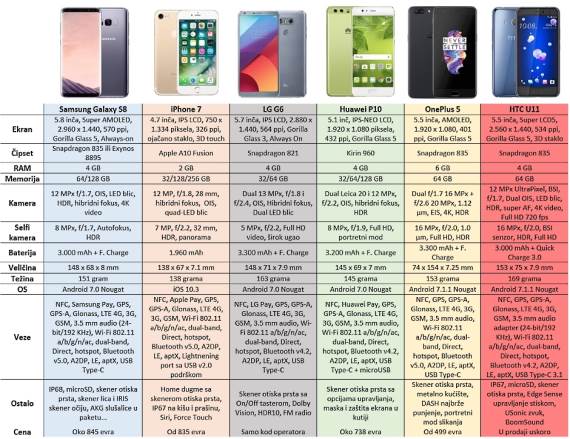 U poređenju sa modelima koje vidite u tabeli, jasno se ističe cena OnePlus 5 modela, koja je u proseku niža za oko 300 evra, što je izuzetno velika razlika s obzirom na to da funkcije koje nudi gotovo nimalo ne zaostaju za modelima iz tabele.