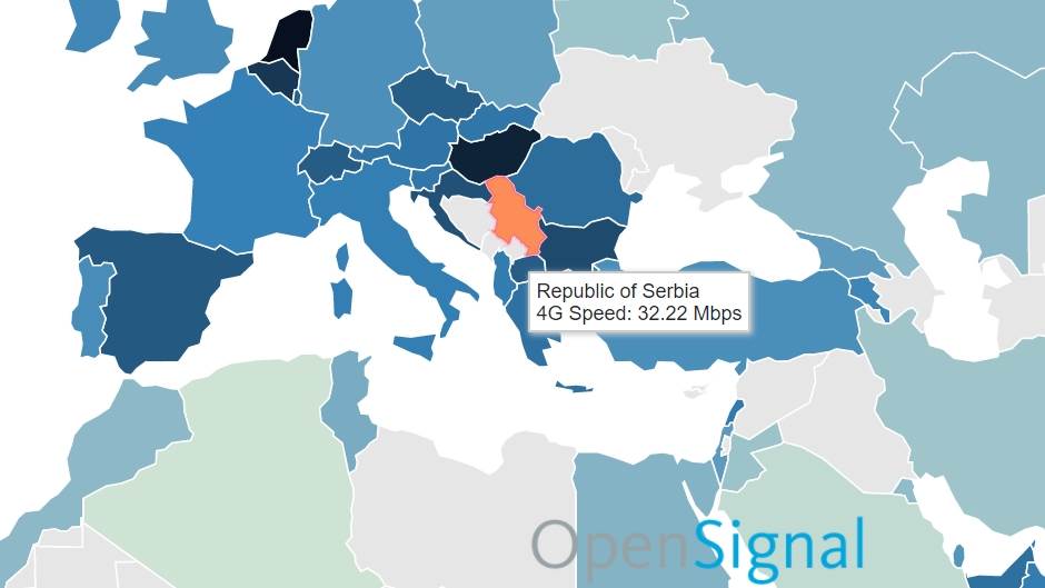 Kompanija OpenSignal procenila je da Srbija ima brzinu LTE/4G mreža 32.22 Mbps, što stavlja našu zemlju u sam svetski vrh. Brži internet od Srbije imaju komšije u Bugarskoj i Mađarskoj. Ove godine Hrvatska je po brzini 4G interneta jedno mesto iza Srbije, dok je prošle godine bila bolje rangirana od naše zemlje. Istraživanje nije vršeno na Kosovu i Metohiji, ali ni u Crnoj Gori i Bosni i Hercegovini.