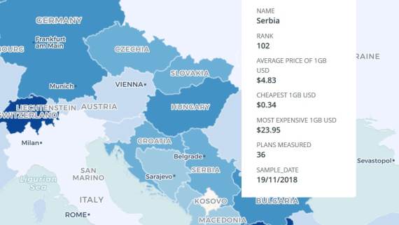 U istraživanju je analizirano 6.313 paketa mobilnog interneta u 230 zemalja i ustanovljeno je da je najjeftiniji u Indiji - 0.23, dok je u Zimbabveu najskuplji - 66.7 evra po gigabajtu.