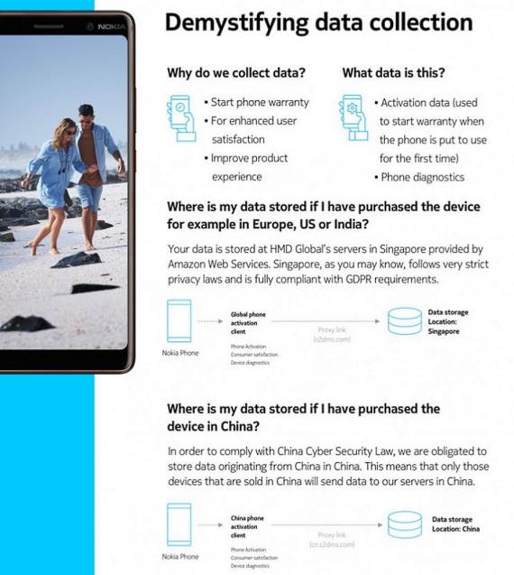 HMD Global, finska kompanija, koja ima prava na Nokia robnu marku telefona, objavila je zvanično saopštenje u vezi sa slanjem podataka sa Nokia 7 Plus telefona kineskim serverima. Problem je otkriven u Finskoj, a Nokia je odmah potvrdila da do slanja podataka jeste došlo, ali i da se radi o malom broju telefona, koji nije trebalo da budu u prodaji izvan Kine.