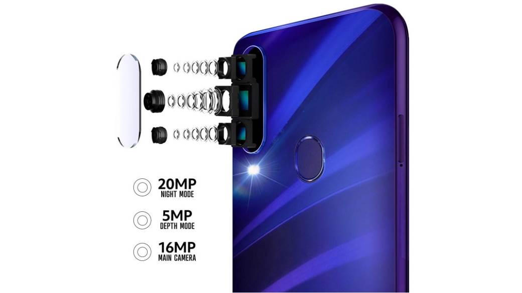 Kamera pozadi je trostruka, sa unapređenim Noćnim modom, a formirana je od sočiva rezolucije pet megapiksela (boke efekat), 16 MPx glavna kamera i 20 MPx sa stabilizacijom kamera za snimanje i slikanje noću. Prednja kamera je rezolucije 24 MPx koristi se i za skeniranj lica za otključavanje telefona, ako je skener otiska prsta nedostupan iz nekog razloga.