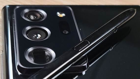Velika kamera tj. ostrvo je tu sa četiri sočiva i blicom, okrugla olovka je tu, a tu je i dalje i zakrivljen prostran ekran, koji bi na Galaxy Note20 trebalo da bude ravan. Telefon izgleda moćno, iako ga prekriva dosta teksta, a oštre oči korisnika primetile su da je ivica Note20 Ultra modela veća, nego gornja ivica (iznad kamere) prošlogodišnjeg Galaxy Note10+. To verovatno ima veze s boljim kamerama, koje je Samsung ugradio u Note20 Ultra, a šuška se o novoj verziji kamere rezolucije 108 MPx.