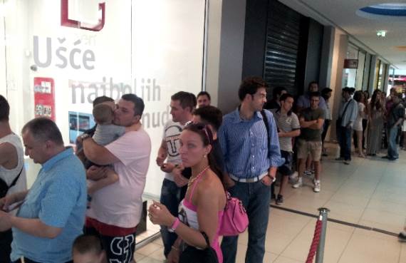 Ispred poslovnice Telekoma Srbija prvi kupci pojavili su se već oko 15 sati, a kolona kupaca formirana je pre 17 časova. U koloni su bili mlađi, ali i stariji korisnici, pa čak i roditelji sa decom. Samsung je atmosferu dodatno “zagrejao“ hostesama, koje su svim zainteresovanim kupcima i prolaznicima pokazivale Samsung Galaxy S3.