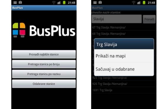 Prva zvanična BusPlus aplikacijaomogućava vam da putem svog mobilnog telefona dobijete besplatne informacije o linijama javnog prevoza u Beogradu i stanicama u odnosu na vašu trenutnu lokaciju. Nema potrebe za slanjem SMS poruka i drugim tarifiranjem. Sistem funkcioniše pomoću GPS pozicioniranja, koji putem slike busa na mapi pokazuje gde se određeni autobus trenutno nalazi.