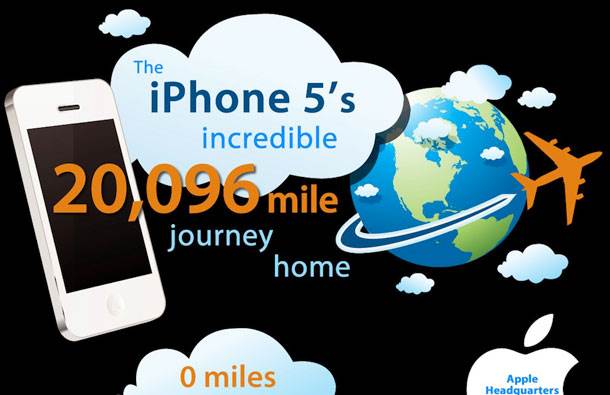 Kada se saberu sve putanje, koje svaki ugrađeni iPhone 5 deo pređe pre nego što stigne u Apple štab u Kpertinu, u Americi, dobija se neverovatna cifra od 32.350 kilometara. Gde se nakupe toliki kilometri, kao i na kojim se to sve usputnim staniciama iPhone 5 zadržava pokušaćemo ukratko da vam predstavimo u sledećih nekoliko koraka.