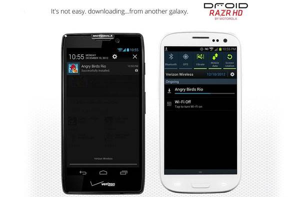 Motorola RAZR HD je na LTE 4G mrežama brža i do 46 odsto. U toj kompaniji kažu za Samsung Galaxy S3 da “nije lako preuzimati aplikacije iz druge galaksije”.