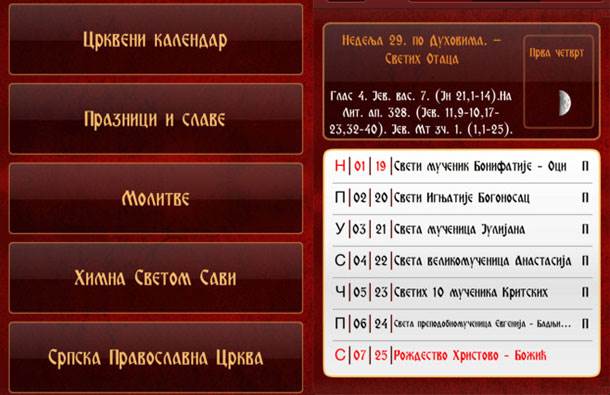Pravoslavna aplikacija za iOS Apple uređaje dostupna je na srpskom jeziku, ali postoje planovi da se naredne verzije prevedu i na engleski jezik, ali i da sadrže korisne informacije o našim najznačajnijim manastirima i crkavama na Kosovu i Metohiji.