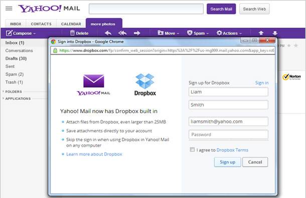Ukoliko koristite Yahoo Mail i Dropbox sada ih možete koristiti ujedinjene. Dropbox je integrisan u vaš Yahoo Mail i fajlovima u njemu možete pristupati kada god hoćete, direktno iz opcija Yahoo Maila, preko weba ili mobilne aplikacije.